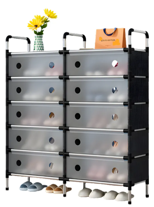 Zapatero Doble Estante Organizador Metálico Con Tapa 5 Niveles